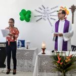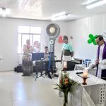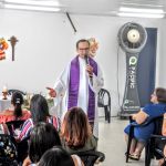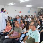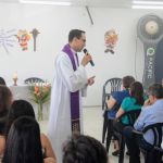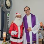O final do expediente da sexta-feira (20), foi consagrado pela Missa de Natal, celebrada pelo padre Flávio Eduardo, da paróquia São Lucas, na Coroa do Meio, com o acompanhamento musical da dupla Fábio e Suerda. Foi ocasião para os funcionários fazerem as últimas entregas de alimentos à Campanha de Solidariedade organizada pela Divisão de Desenvolvimento Humano da Gerência de Recursos Humanos [DIDHU/GERHU]. Não-perecíveis que foram somados aos alimentos in natura também doados pelos agricultores irrigantes dos perímetros irrigados administrados pela Cohidro. Todos esses donativos foram inteiramente entregues à instituição beneficente Oratório de Bebê, que oferece às crianças e adolescentes atendimento assistencial, psicológico, médico e educacional.