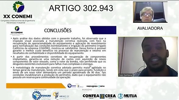 O foco principal do trabalho consistiu em analisar informações relacionadas à falha da bomba centrífuga em serviço na EB-100, durante o procedimento de inspeção e manutenção corretiva, em que foram adotadas medidas com o objetivo de evitar danos à máquina, com a finalidade de aumentar a sua disponibilidade para o perímetro de irrigação. A partir da técnica não destrutiva de inspeção visual, foi levantado um checklist das não conformidades da bomba e a elaboração de um plano de ação corretivo, que incluiu aplicação de uma resina epóxi na ‘voluta’ e no rotor da bomba, para reconstituir as superfícies metálicas internas desgastadas. Para o diretor-presidente da Cohidro, Paulo Sobral, a produção do artigo científico demonstrou iniciativa, dedicação e capacidade dos funcionários das empresas.