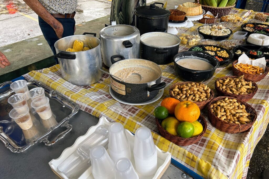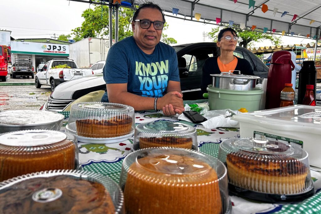 José Aparecido, mais conhecido por Cidinho do Céu, está no seu segundo ano participando da Feira Junina. Além de outros quitutes de época, ele produz bolos tradicionais a partir de ingredientes naturais, com menos adição de açúcar e sem leite. Produto diferenciado que no período junino, segundo ele, aumenta a procura em 70%. “Eu faço todo ano, e nessa época que as pessoas compram mais, a gente fica mais à disposição do cliente. Nós trabalhamos muito com coco, porque muita gente tem intolerância à lactose. Aqui nós vendemos água, suco de maracujá, cafezinho, salgados, mungunzá, arroz doce, canjica. Para comer na hora e para levar para casa”, destacou.