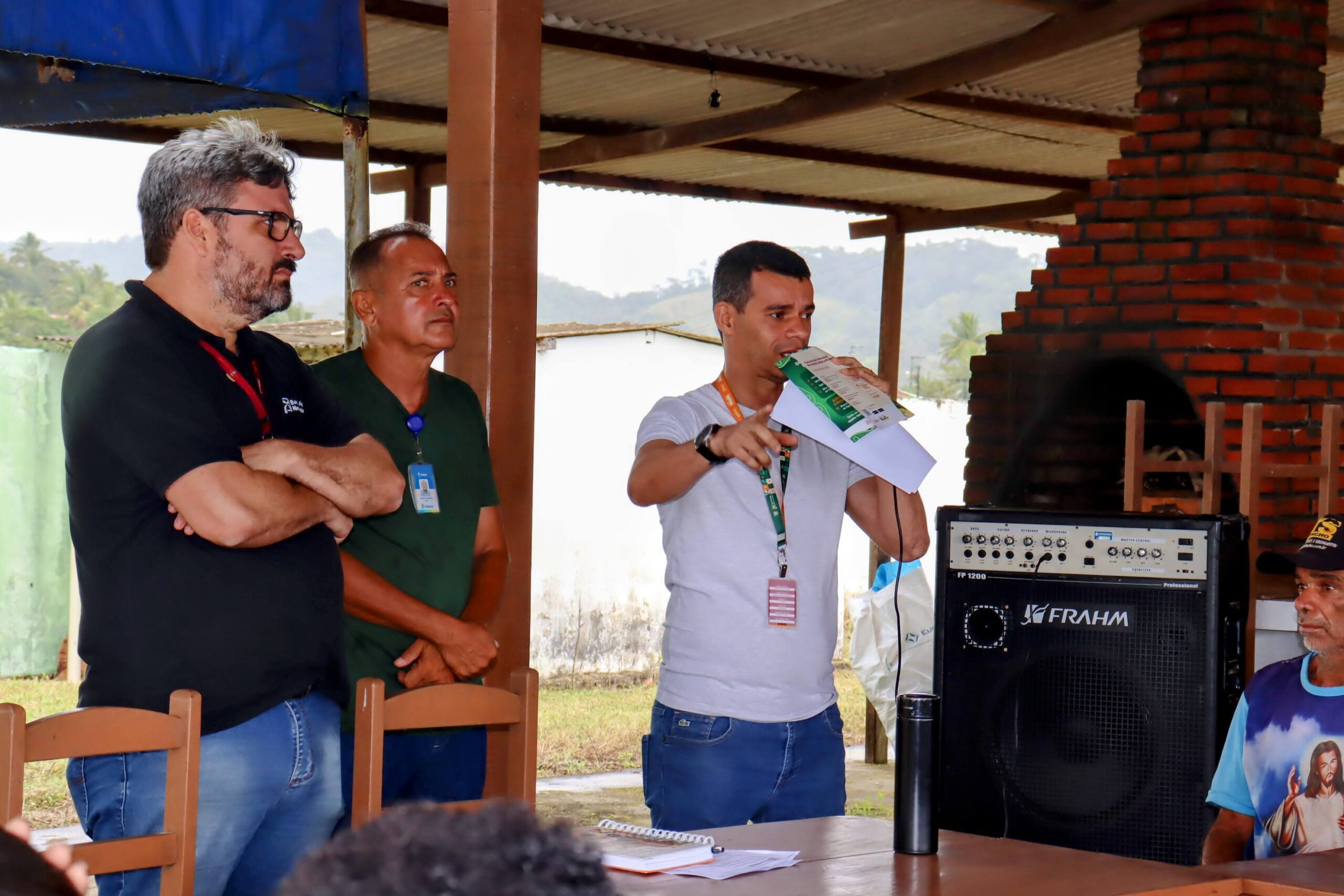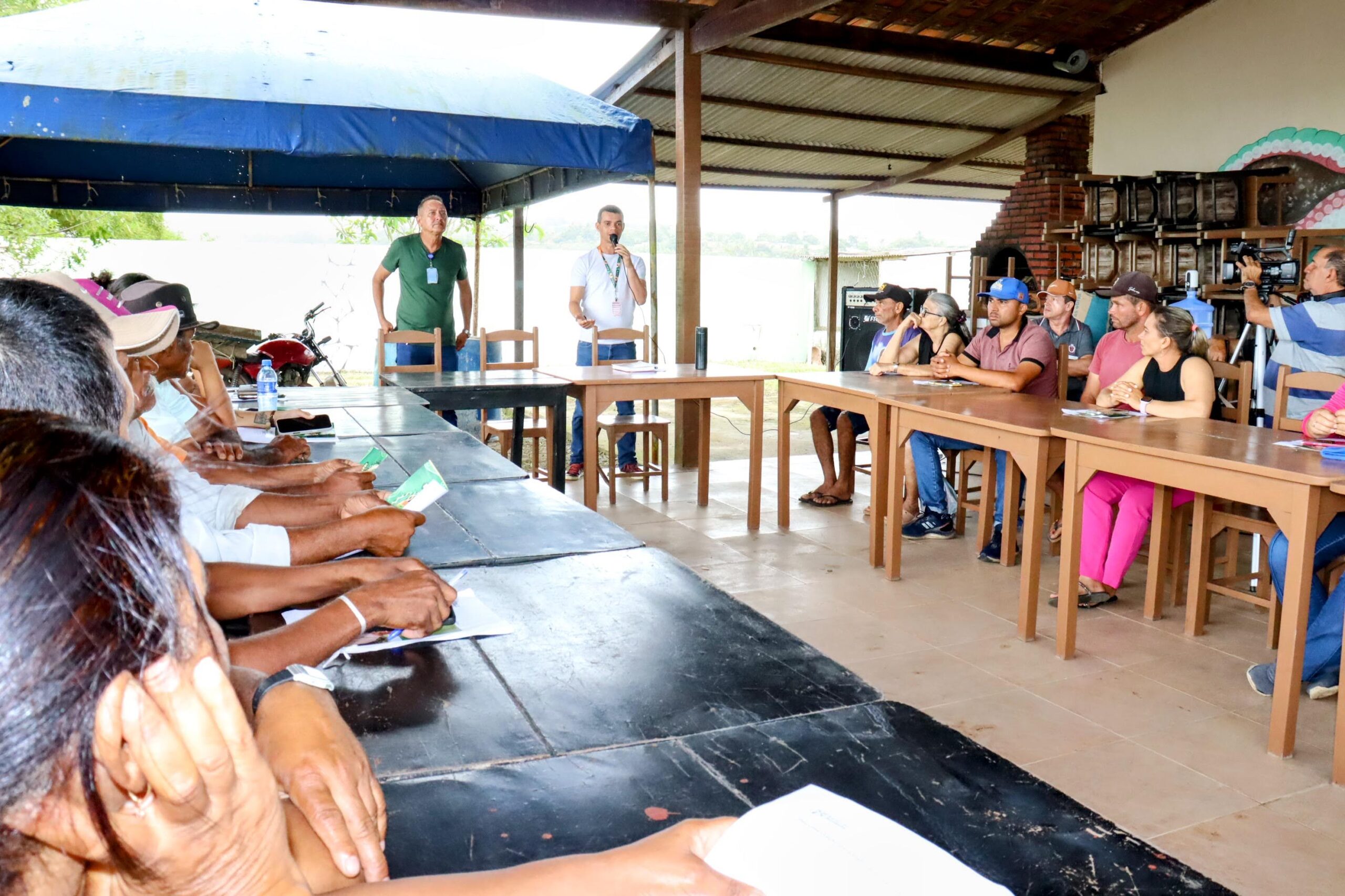 O gerente de relacionamento, Antoane Amaro, e o analista de projetos, Fernando Pessoa, do BNB, na quinta-feira, expuseram as linhas de crédito para a agricultura familiar a 87 agricultores irrigantes do Jacarecica II, que assiste povoados de Areia Branca, Malhador e Riachuelo. Uma semana antes, o colega deles no banco, o agente de crédito Luan de Oliveira, conversou com 32 produtores do perímetro Piauí, em Lagarto.