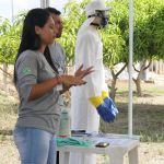 As quatro primeiras turmas do ‘treinamento e capacitação para o uso adequado dos agrotóxicos’ findaram o curso nesta sexta-feira (7) com um dia de campo, semana em que foram habilitados em torno de 150 produtores irrigantes do Perímetro Irrigado da Ribeira. Ao repetir esse cronograma semanalmente, a as capacitações ao todo atenderão 980 destes agricultores assistidos pela Cohidro através do Programa Águas de Sergipe, ao serem incluídos os inseridos nos perímetros Jacarecica I e II, que abrangem áreas de irrigação pública também de Itabaiana, Malhador (SE), Riachuelo (SE) e Areia Branca (SE). Com as duas aulas e o dia de campo, capacitação será de 12h/aula para cada agricultor.