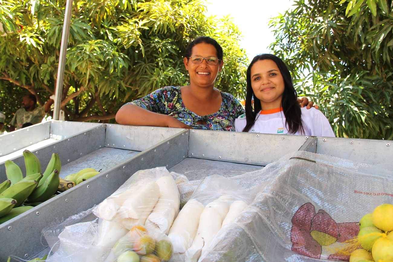 Eliane e Wline Vieira de Souza, mãe e filha, são de uma família grande, onde em torno de 20 pessoas trabalham diretamente com a agricultura em três áreas irrigadas no Califórnia. Produzem pequenas quantidades de hortaliças, frutas e nesta primeira edição da FAF trouxeram produtos largamente explorados comercialmente durante todo ano, como a banana, a acerola, o limão, o quiabo e a macaxeira, mas também um fruto nativo e de época: o umbu. A feira, dentro do perímetro irrigado e explorando somente aquilo que é gerado no polo agrícola, acaba sendo uma novidade experimentada tanto pelo consumidor como por quem é produtor.