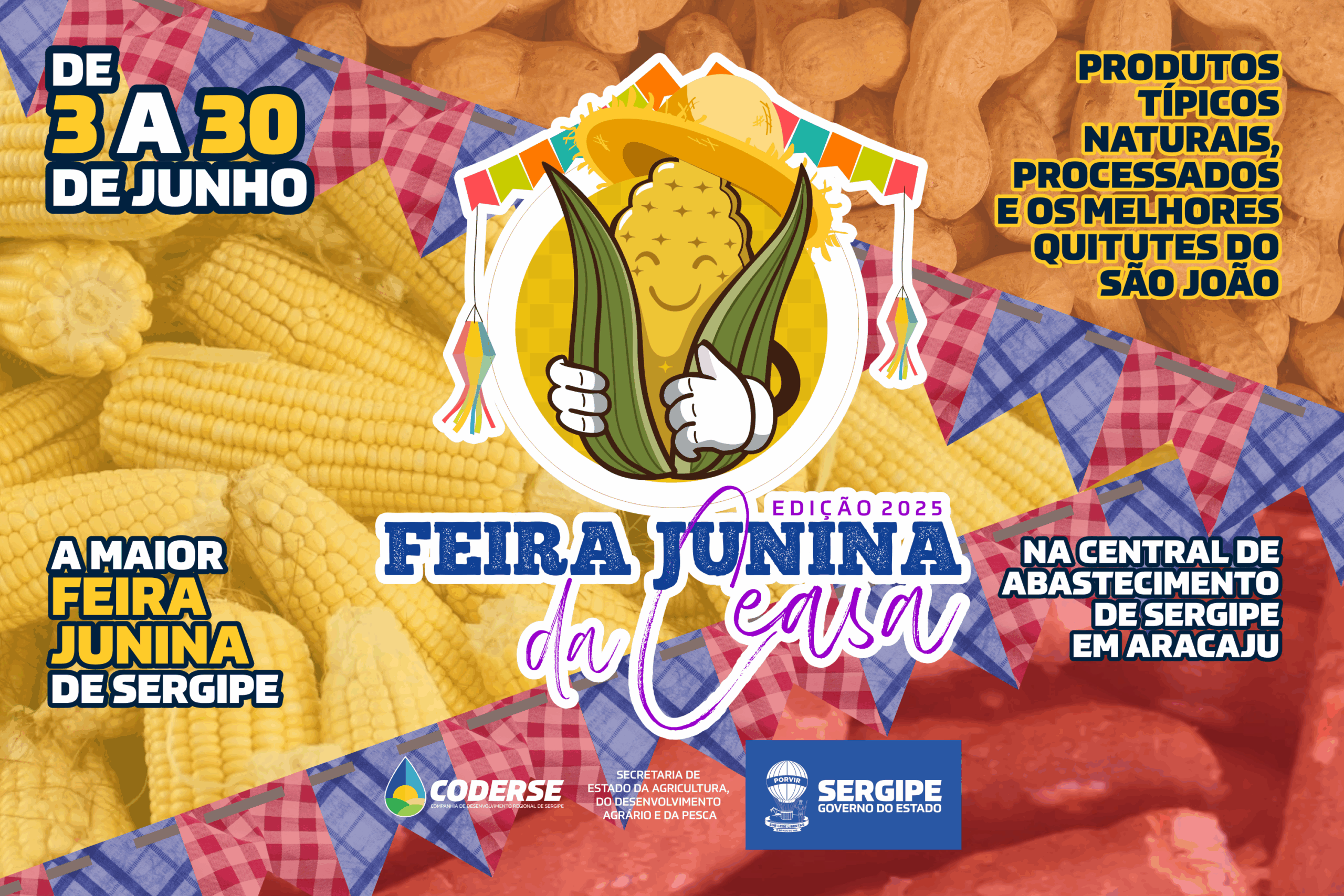 Durante todo período junino, os sergipanos terão acesso aos produtos naturais, processados e os melhores quitutes da época para organizar as festas e comemorar os dias santos do mês. Em 2025, a Feira Junina na Central de Abastecimento de Sergipe (Ceasa) Aracaju, vai começar mais cedo, na próxima terça-feira, dia 3 de junho, e segue até 30 de junho. Pelo segundo ano consecutivo, a feira está sendo organizada pela Companhia de Desenvolvimento Regional de Sergipe (Coderse), vinculada à Secretaria de Estado da Agricultura, Desenvolvimento Agrário e da Pesca (Seagri).