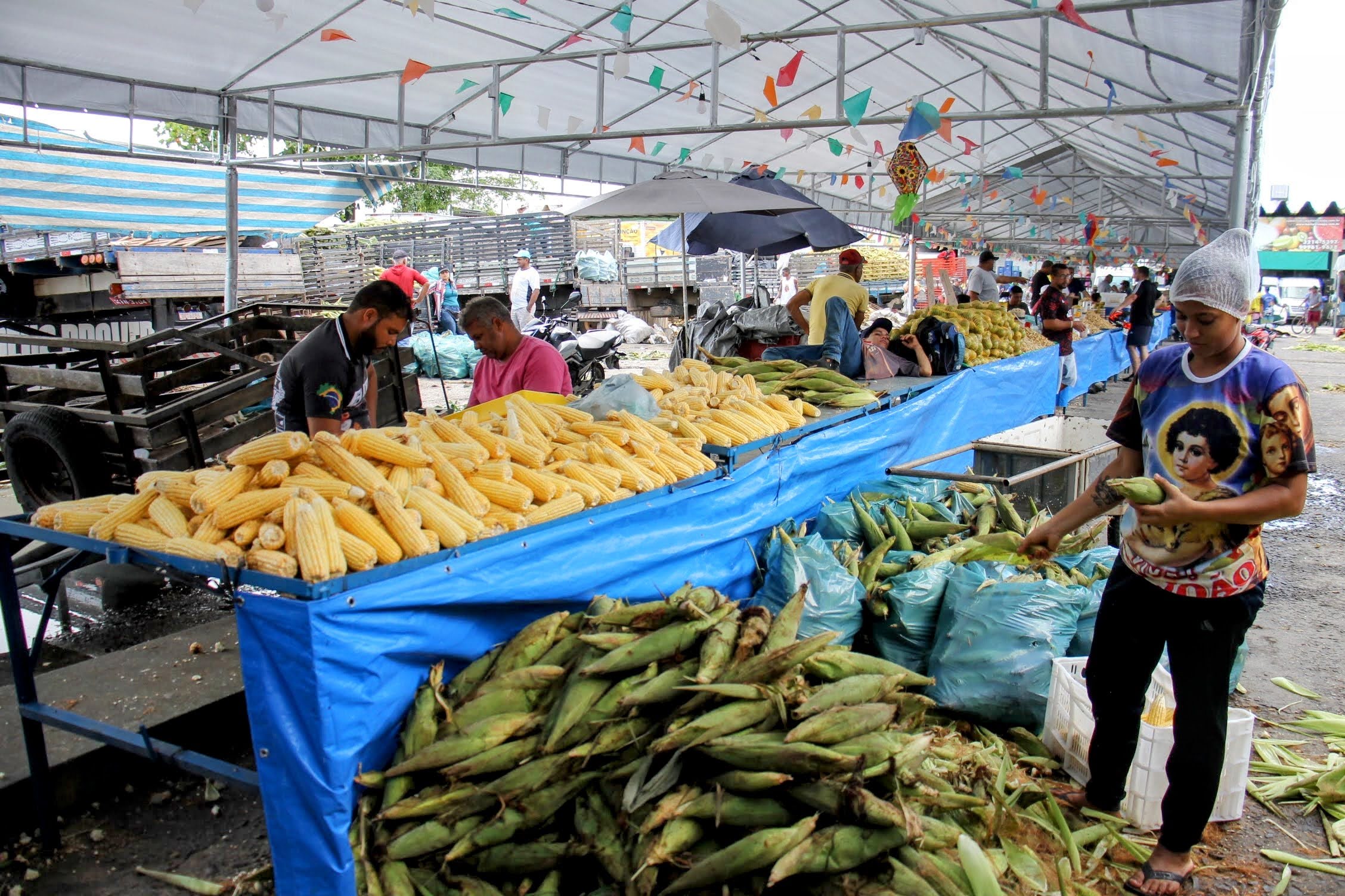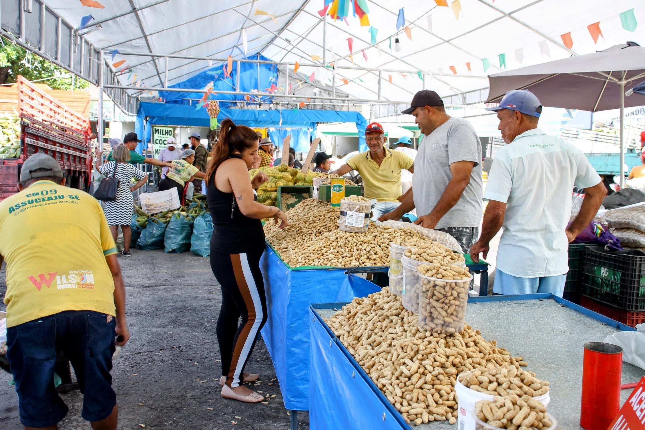 Uma estrutura de bancas e ampla cobertura será montada no estacionamento interno da Ceasa para receber a feira. Além da ‘estrela principal’ das festas juninas, o milho verde — in natura, descascado, ralado ou pronto para consumo em doces, cozido ou assado — tem muita macaxeira, amendoim, coco seco, frutas cítricas, bebidas típicas e outros alimentos que fazem parte das comemorações de São João e São Pedro. Os carregamentos com espigas, vindo das regiões produtoras do interior sergipano, estão chegando e o processamento acontece na feira, na frente do cliente. Não por outro motivo, o evento também é conhecido como ‘Feira do Milho’.