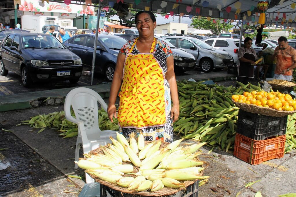 Sandra Santos é comerciante na Ceasa há nove anos. Durante todo ano, ela se dedica à comercialização de todos os tipos de frutas, mas, quando chega o período junino, estende o ponto comercial para também vender o milho verde, com ou sem casca, na feira junina. “O primeiro dia da feira foi maravilhoso, vendemos bem. Vou ficar na feira todos os dias até São Pedro, sem faltar um dia. Tem que ter disposição. Quando acabar o período junino, volto a vender somente fruta novamente”, destacou.