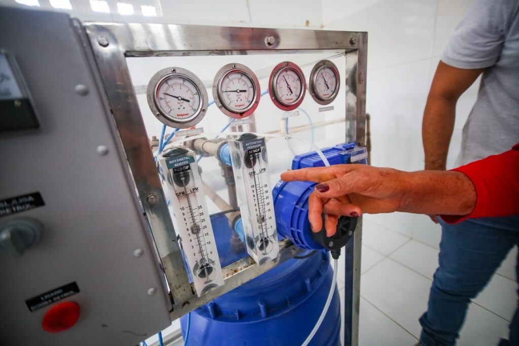 “Fizemos a troca utilizando as membranas fornecidas pela Coderse. As peças são o coração do sistema, fazem a filtragem da água salina, coletada dos poços tubulares profundos, separam o concentrado e fornecem água potável para o consumo humano. Mas a unidade de produção de água dessalinizada é formada de muitos itens, como reservatórios, tanques de contenção, tubulação, e o poço. Todos são componentes que carecem de manutenção e reparo feitos pelas comunidades, Coderse, prefeituras ou em parceria entre eles”, pontuou Vanderson Carvalho.