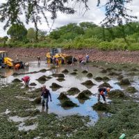 Por intermédio da gerência do Perímetro Irrigado Califórnia, 80 agricultores irrigantes, servidores da Companhia de Desenvolvimento de Recursos Hídricos e Irrigação de Sergipe (Cohidro) e Prefeitura Municipal de Canindé de São Francisco, se reuniram em mutirão para limpeza da barragem anexo à Estação de Bombeamento EB-02, no último dia 6. Foram retiradas oito caçambas de algas, lama e detritos que prejudicavam o funcionamento das bombas e a qualidade da água.