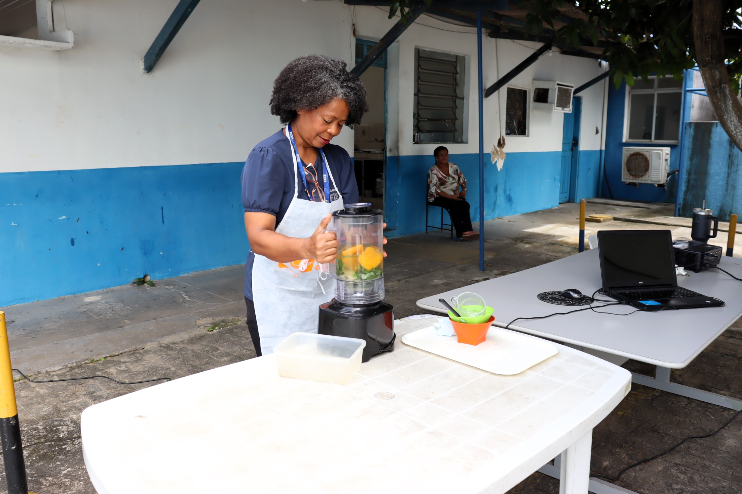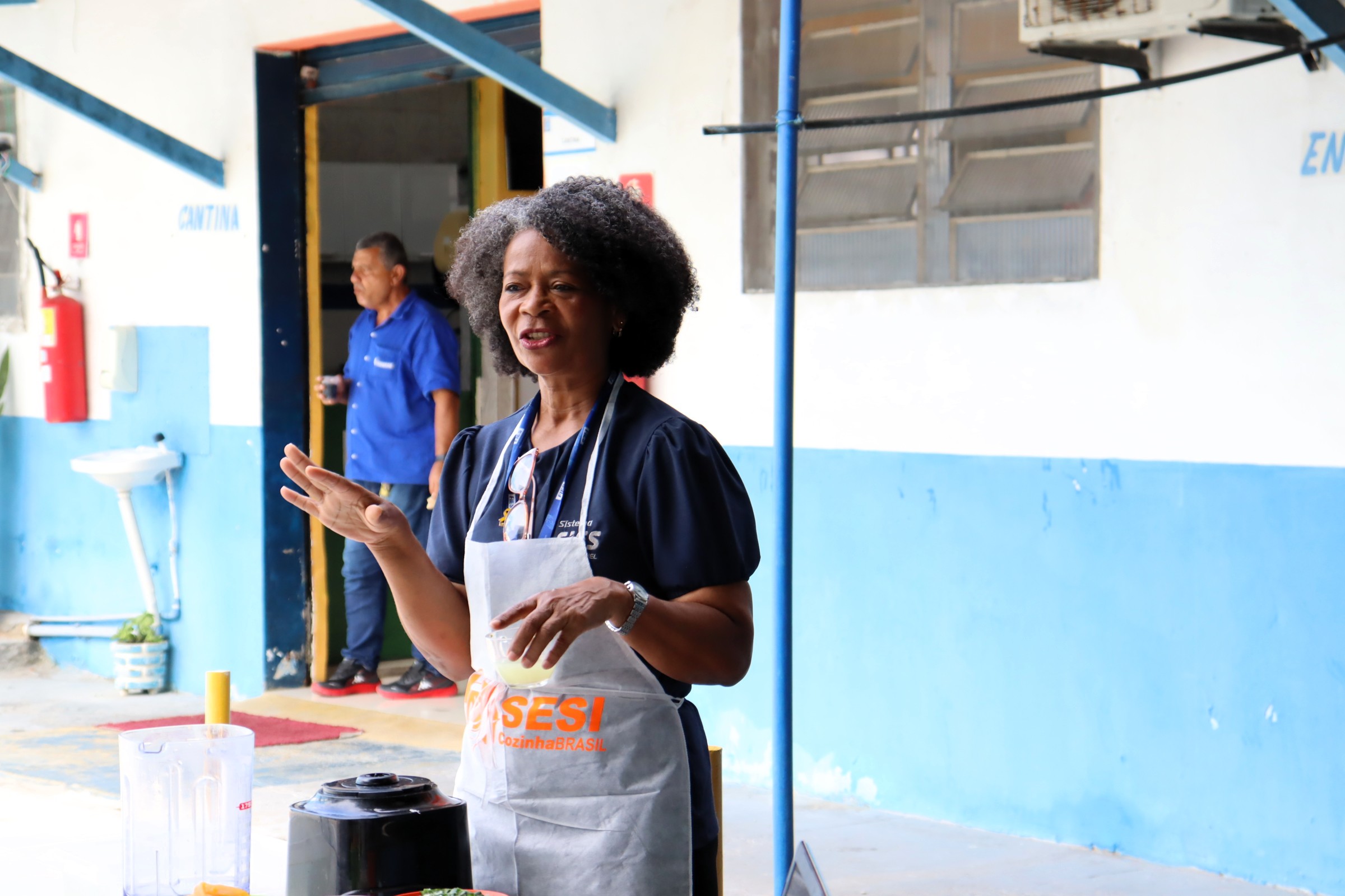 A receita leva couve, maracujá e suco de limão. O suco deve ser consumido sem coar, para manter as fibras e agir em benefício do funcionamento digestivo. O Sesi visa a promoção de uma alimentação saudável por meio de Educação Alimentar e Promoção da Saúde nas indústrias sergipanas. Palestrou, a nutricionista do SESI e Especialista em Saúde Integrativa, Daiana Oliveira de Melo. Ensinou o ‘Suco da Horta, a auxiliar do Programa de Alimentação e Nutrição, Edilde Santos Santana.