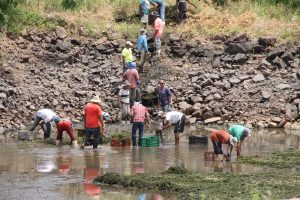 Em mais um Dia do Rio a paralisação do sistema do Perímetro Irrigado Califórnia, administrado pela Companhia de Desenvolvimento de Recursos Hídricos e Irrigação de Sergipe (Cohidro) em Canindé de São Francisco, serviu para que os agricultores irrigantes atendidos pelas estações de bombeamento (EBs) 7 e 3, fizessem mutirão de limpeza nos reservatórios destas instalações e na última, os técnicos da Cohidro iniciaram um trabalho para a troca dos crivos, que será repetido nas outras 5 unidades de bombeamento.