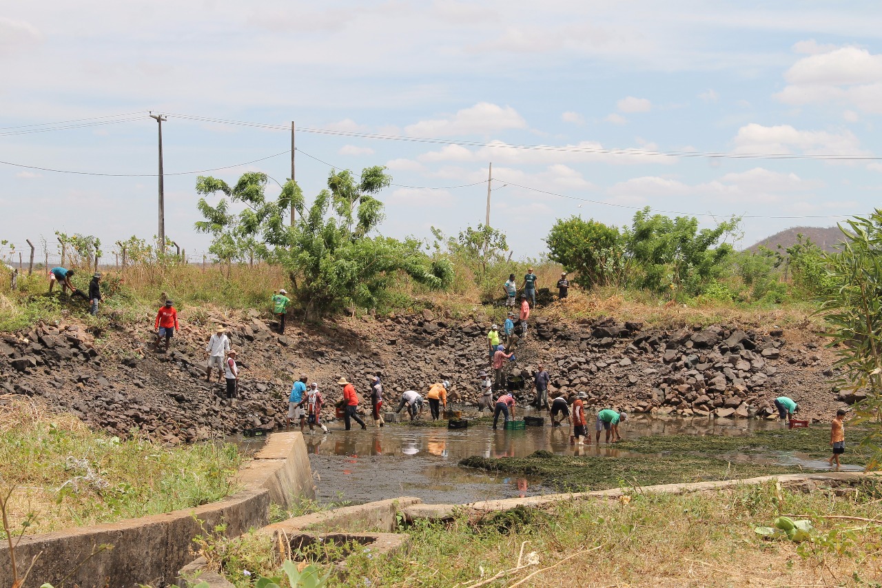 Em mais um Dia do Rio a paralisação do sistema do Perímetro Irrigado Califórnia, administrado pela Companhia de Desenvolvimento de Recursos Hídricos e Irrigação de Sergipe (Cohidro) em Canindé de São Francisco, serviu para que os agricultores irrigantes atendidos pelas estações de bombeamento (EBs) 7 e 3, fizessem mutirão de limpeza nos reservatórios destas instalações e na última, os técnicos da Cohidro iniciaram um trabalho para a troca dos crivos, que será repetido nas outras 5 unidades de bombeamento.
