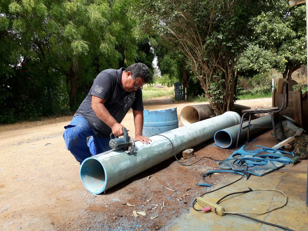 Feitos de metal, os crivos antigos já se encontravam bastante enferrujados e rompidos, ineficientes no trabalho de evitar que as bombas e os aspersores de irrigação sejam danificados ou entupidos por materiais sólidos. Os novos são de PVC, fabricados pelos próprios técnicos da Cohidro em Canindé, utilizando tubos de 200mm.