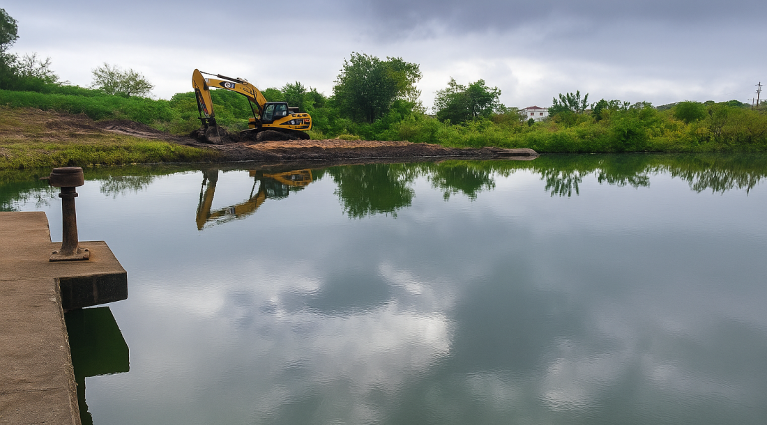 A parada na irrigação, em paralelo à finalização da obra na EB-7, serviu para a limpeza mecânica do reservatório da EB-02, retirando principalmente a vegetação subaquática que nasce em seu leito.