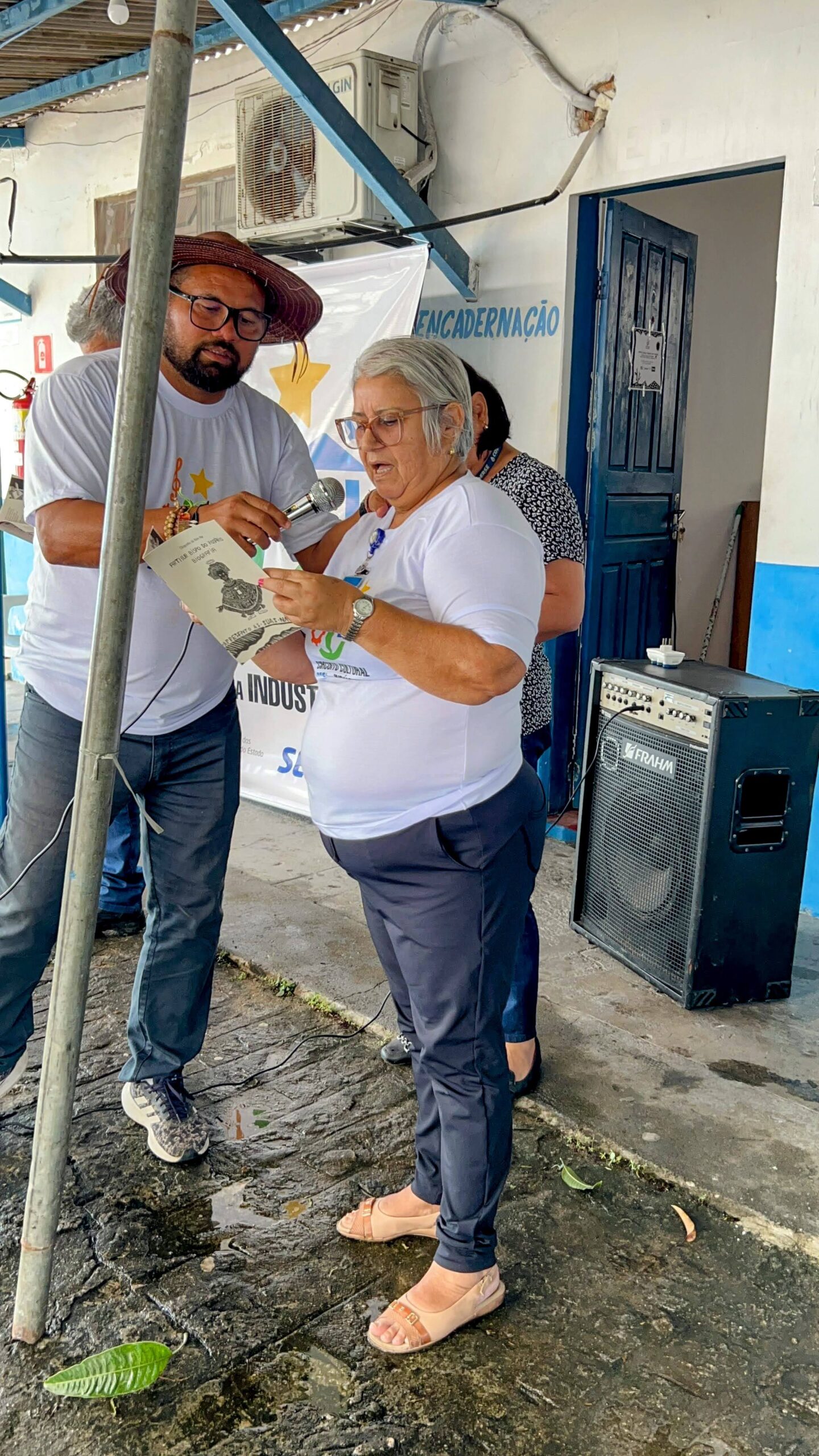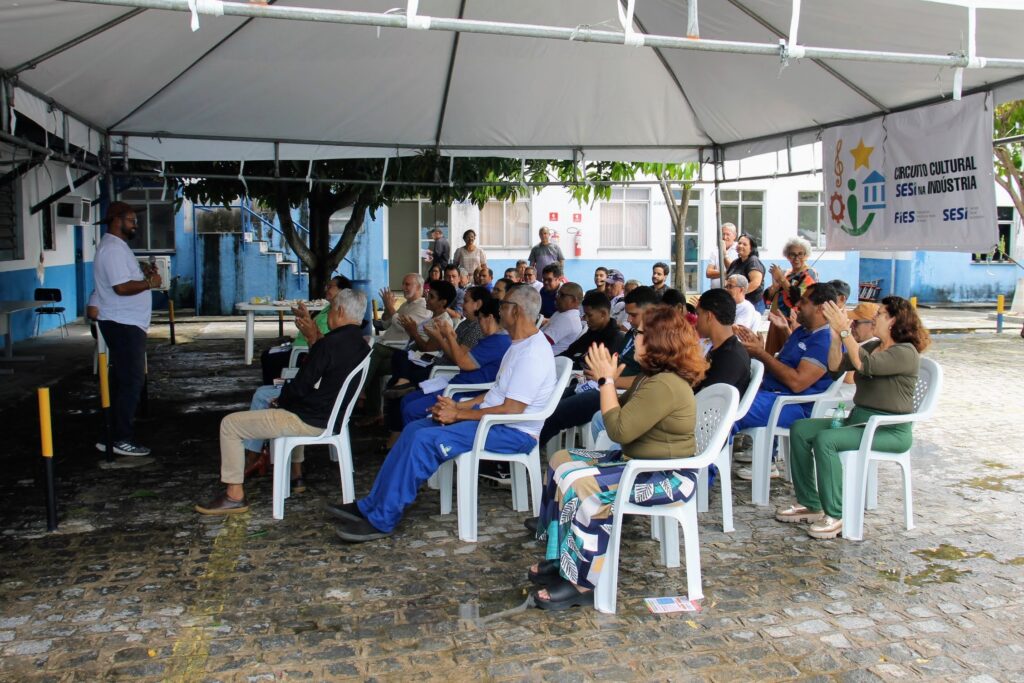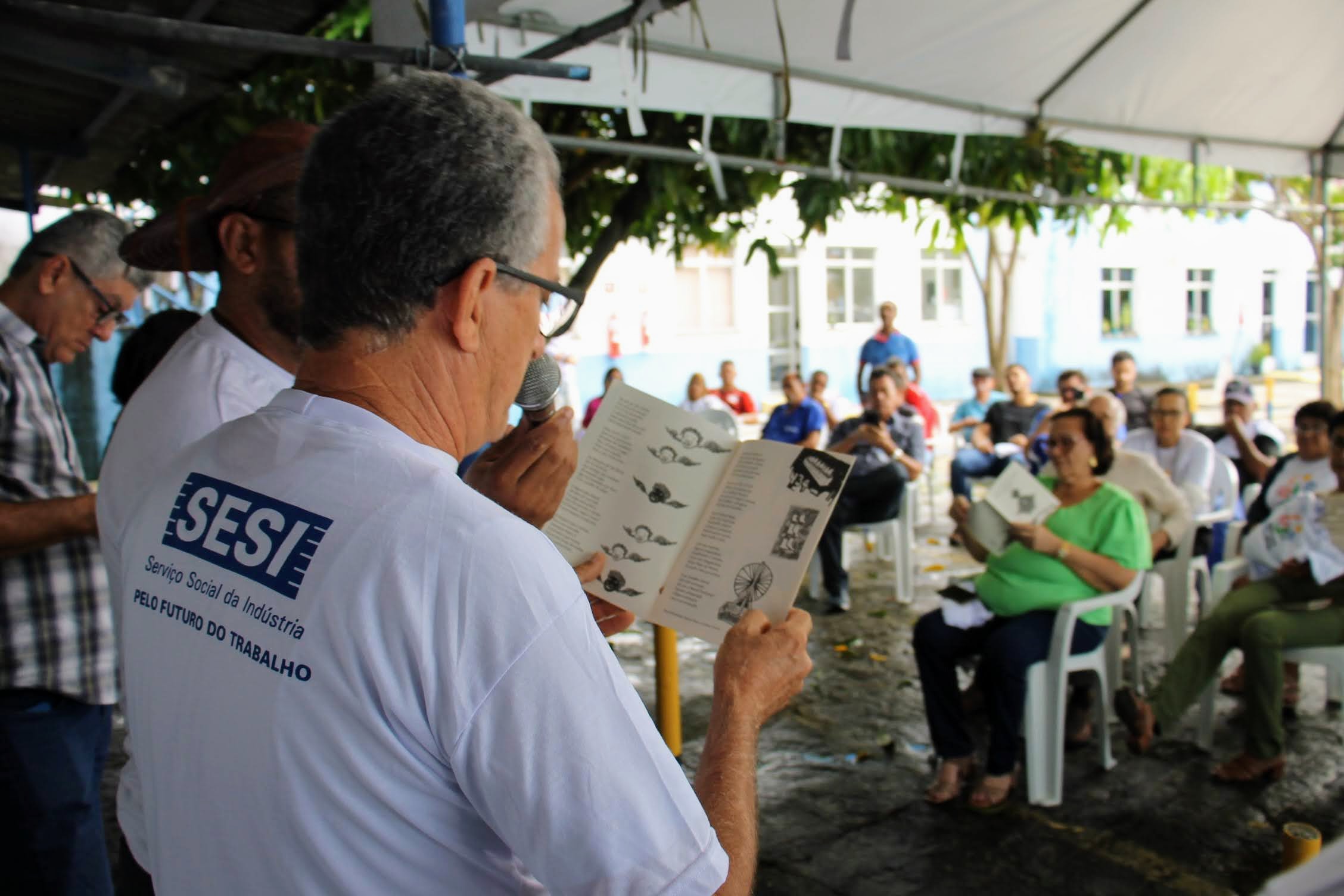 O artista apresentou sua poesia, contou sua história, cantou forró e chamou os servidores para também interpretar a Literatura de Cordel. Encantados com os versos e convidados à continuar a leitura — a partir da distribuição de exemplares da literatura de cordel de Chiquinho do Além Mar — teve servidor que até escreveu poesia de improviso. Prova do sucesso e aprovação do público que compõe a Família Coderse. Parabéns ao Sesi pela iniciativa!