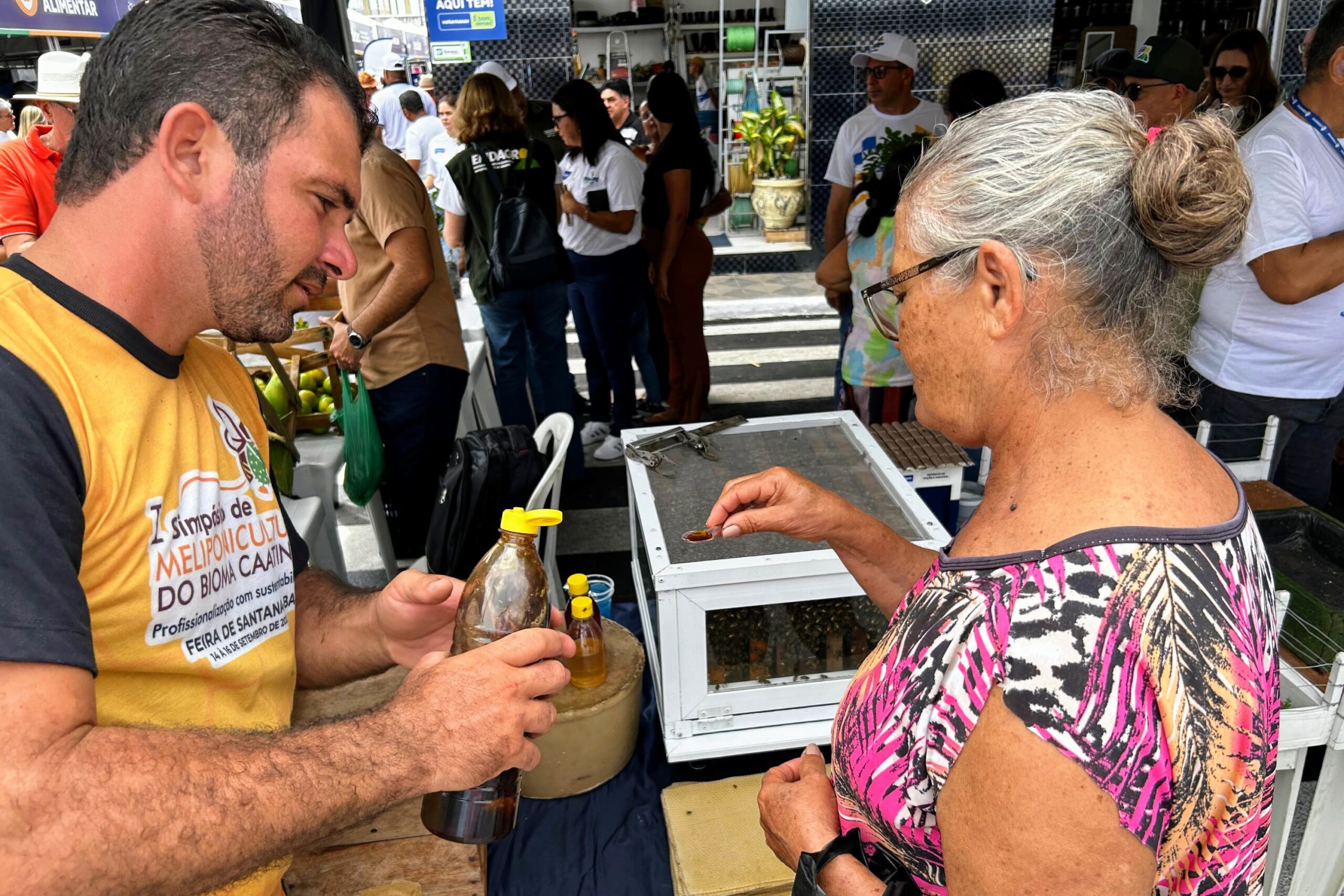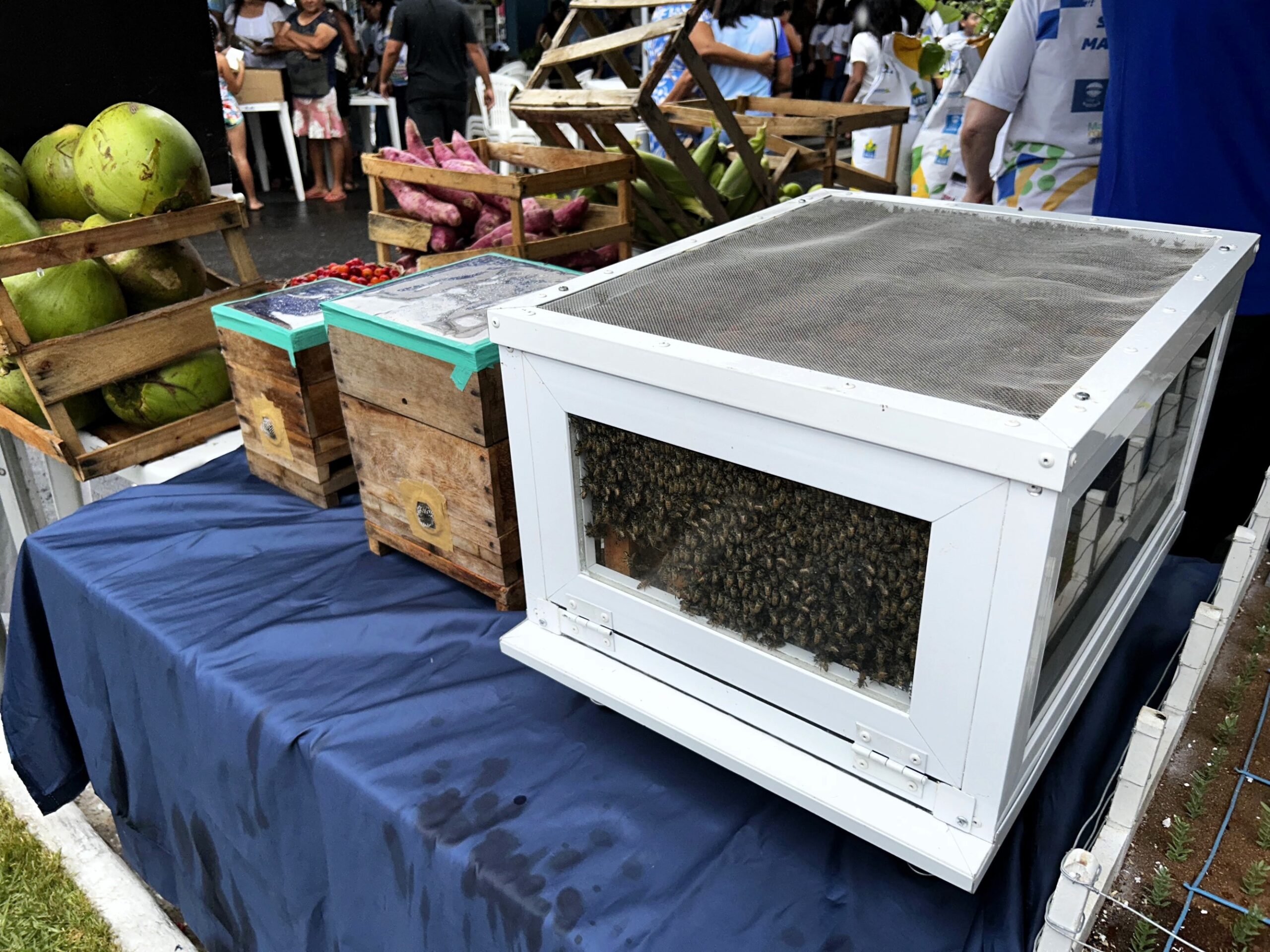 “Estamos com uma caixa de vidro com a abelha europeia com ferrão, com uruçu e mandassaia. É com muita alegria, porque o povo está vendo e a gente está conscientizando para que as pessoas não matem as abelhas, para que preservem e chamem a gente para capturar. Uma experiência inédita. Eu fico satisfeito com a repercussão que está tendo e com a maravilha que é. E temos o mel ali para quem quiser provar”, comemorou Eloi Francisco.