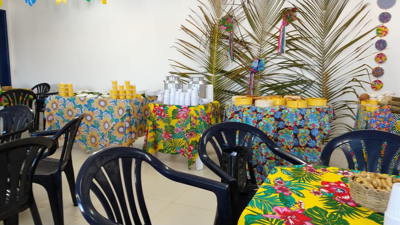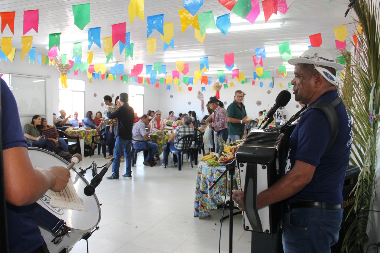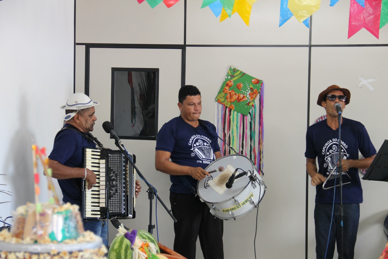 Funcionários da sede da Cohidro em Aracaju fizeram nesta sexta-feira (28), véspera de São Pedro, a sua confraternização junina, animada pelo trio pé de serra Capunga do Forró e muita comida típica do período em que são comemorados os dias dos santos Antônio, João e Pedro. Comilança por muitos balanceada na hora do arrasta-pé.