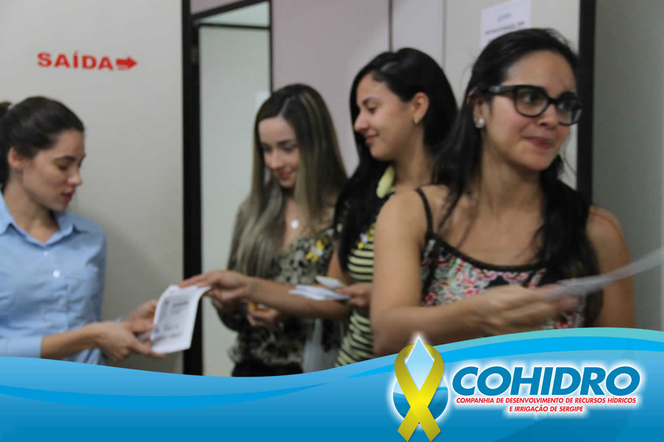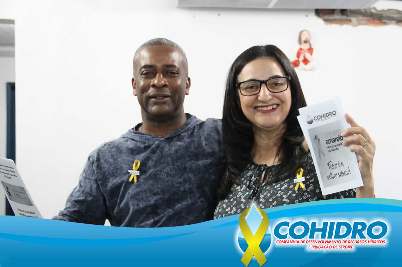 Campanha de prevenção ao suicídio hoje teve mobilização na Cohidro, com as meninas da Divisão de Bem-estar Social da Cohidro (Dibem) e da Divisão de Saúde e Segurança do Trabalho (Dissa), distribuindo as fitas do ‘Setembro Amarelo’, panfletos e cartões de divulgação do Centro de Valorização da Vida (CVV).